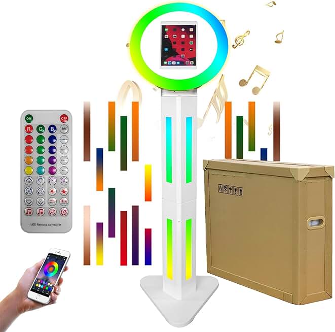 Portable Photo Booth for iPad 10.2" 10.9" 11" 12.9" Shell Stand Selfie Photobooth with Software Control RGB Ring Light Music Sync Light Box and Honeycomb Box for Parties Wedding Rental (White)