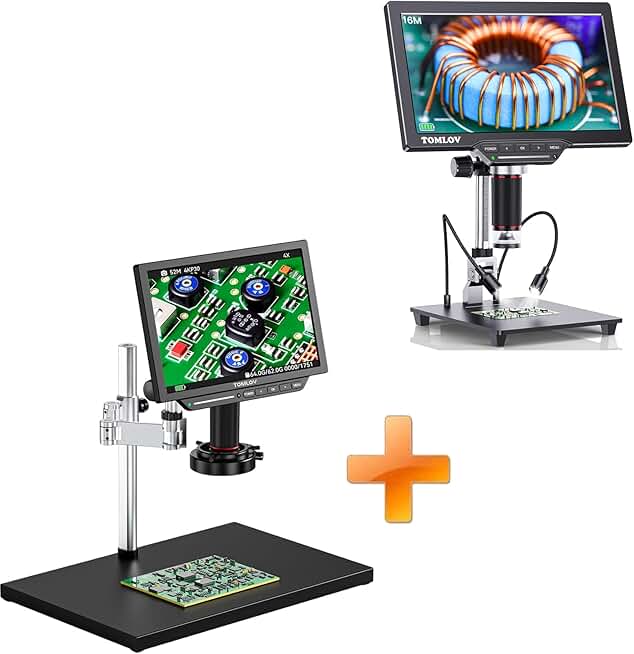 TOMLOV TM4K Max 4K Digital Microscope 2000x + DM202 Coin Microscope, 52MP Spin Arm Soldering Microscope for Adults, 10.1" HDMI Electronics Repair Microscope with Ring Light, Larger Base LCD Coin Micro