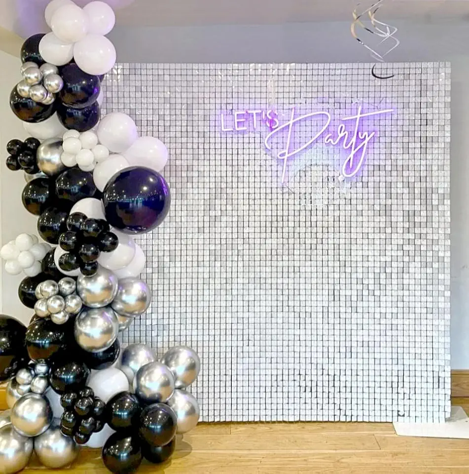 White Shimmer Wall Backdrop Panels Square Sequin Shimmer Backdrop, Wall Decor for Birthday, Anniversary Wedding Decoration (White, 6ft x 6ft)