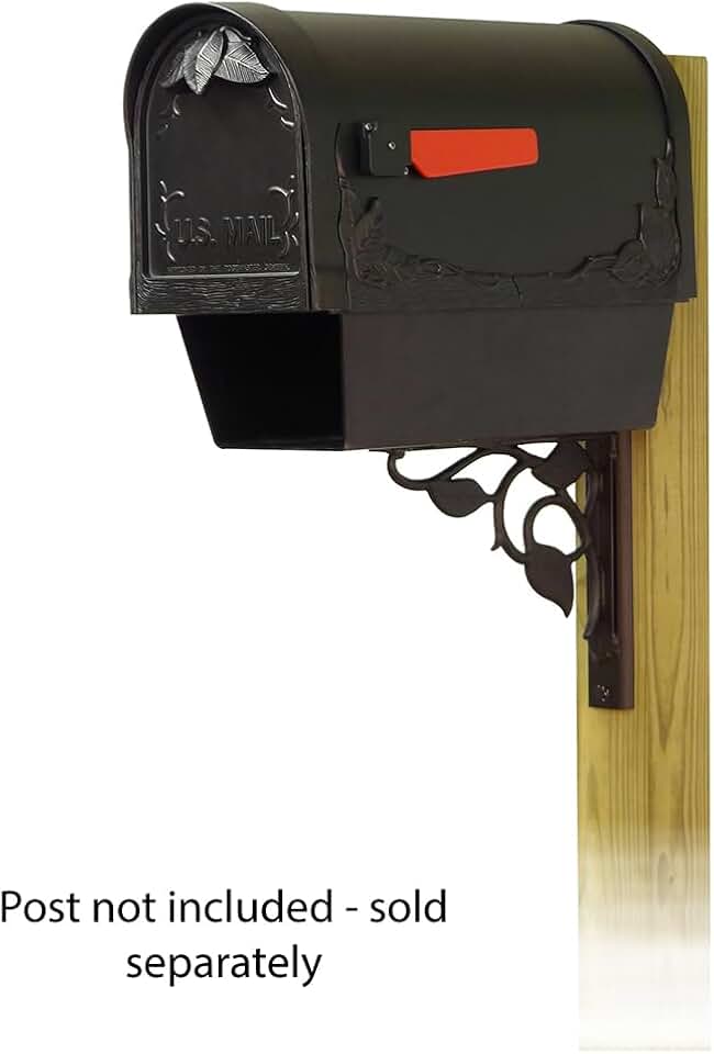 Special Lite Floral Curbside Mailbox with Newspaper Tube and Floral Front Single Mailbox Mounting Bracket - TC-FLO-FS-2003-BLK
