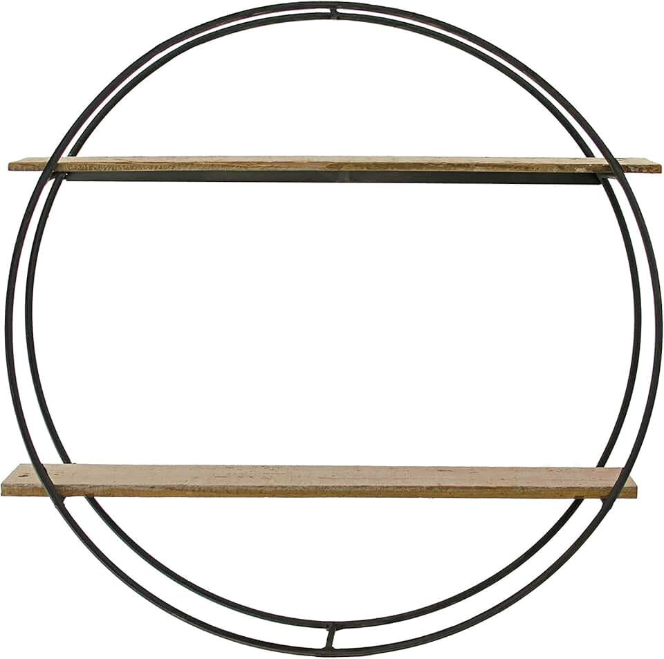 Circular Floating Shelf Wall-Hanging Home Decor Double Tiered Frame 2 Wooden Shelves 24IN X 24IN X 4IN