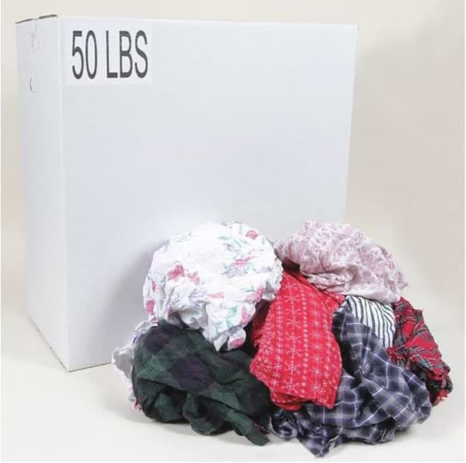Assorted Color Cotton/Polyester Cloth Rags, 50 Lb Box, Varied Sizes, 3.2 Ounce (Pack of 250)