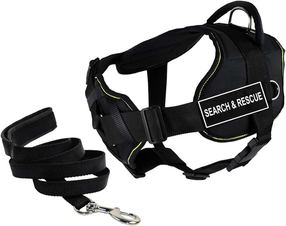 DT Fun Chest Support "SEARCH & RESCUE" Harness, X-Large, with 6 ft Padded Puppy Leash.