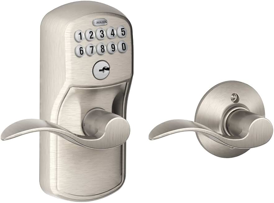 SCHLAGE FE575 PLY 619 Acc Plymouth Keypad Entry with Auto-Lock and Accent Levers, Satin Nickel