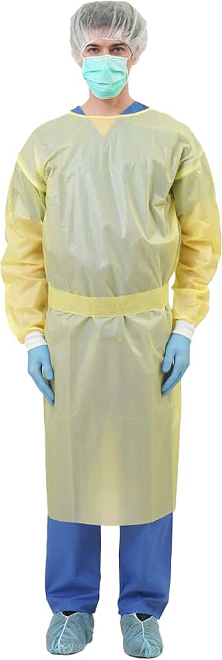 Medtecs Disposable Isolation Gowns - AAMI Level 4 PPSB+PE 36 gsm - 10/100 PC - Seal Tape & Elast Cuffs, Fluid Resistant Durable Comfortable PPE - CoverU Series, Unisex Adult | Yellow, 100 PC