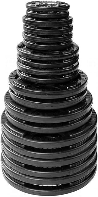 Body-Solid Quad Grip Design Rubber Plate - Olympic Weight Plates, Set with Rubber Coating, Dumbbell & Bumper Weights for Barbell