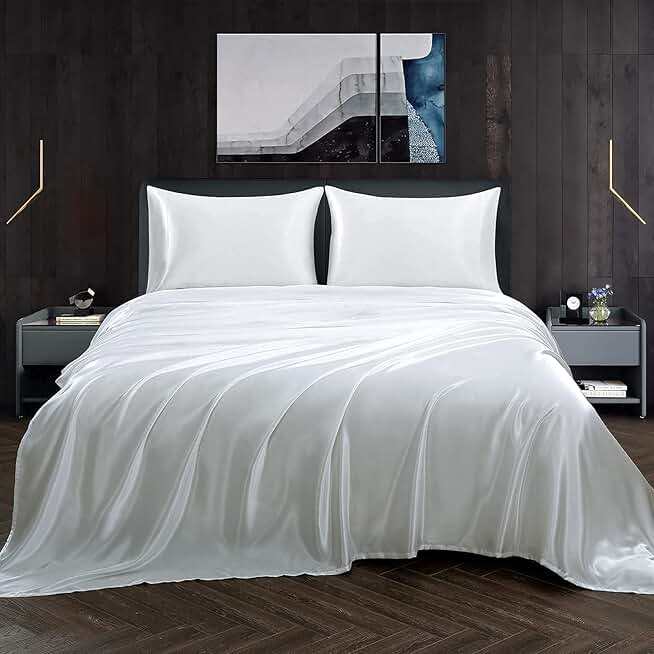 100% Mulberry Silk Sheet Set - 25 Momme Grade 6A, 8 Inch Deep Pocket, Luxurious Bed Sheets for Ultimate Comfort,Queen-Denim White