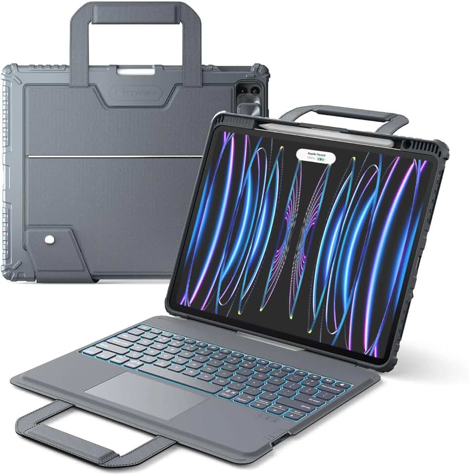 Nillkin Carry Go Keyboard Case for iPad Pro 12.9 (3rd/4th/5th/6th Gen) with Handle, iPad Air 13 inch(M2) Rugged Case with Detachable Keyboard, Magic Trackpad, 7 Colors Backlit, Camera Cover, Gray