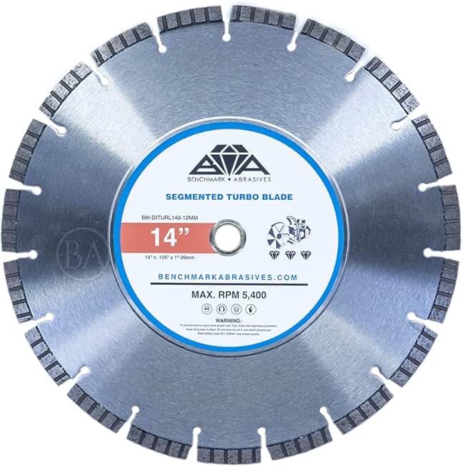 Benchmark Abrasives 14" Segmented Turbo Diamond Blade with Steel Core, Saw Blades for Faster Cutting on Brick Ceramic Tile Granite Concrete, Use with Power Saws - (5 Pack)