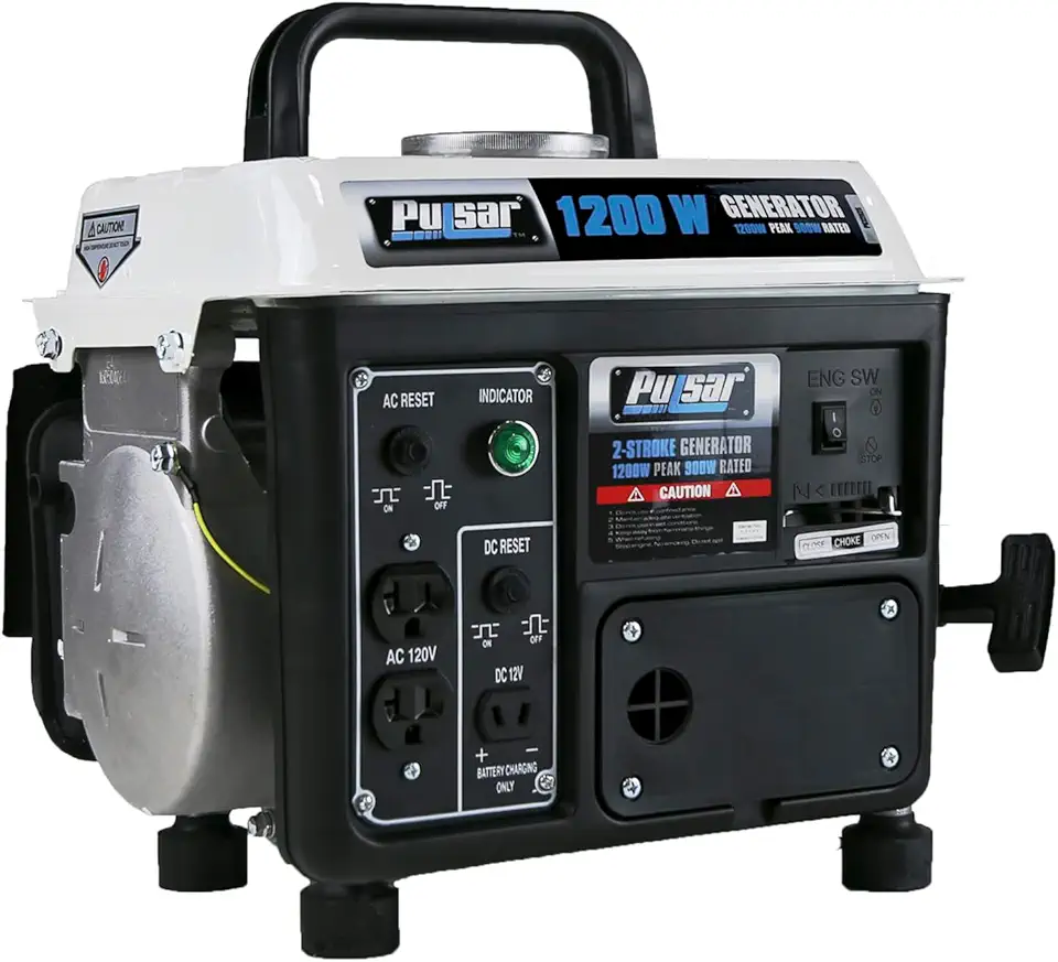 Pulsar 1,200W Carrying Handle, PG1202SA Gas-Powered Portable Generator, 1200W, Black/White