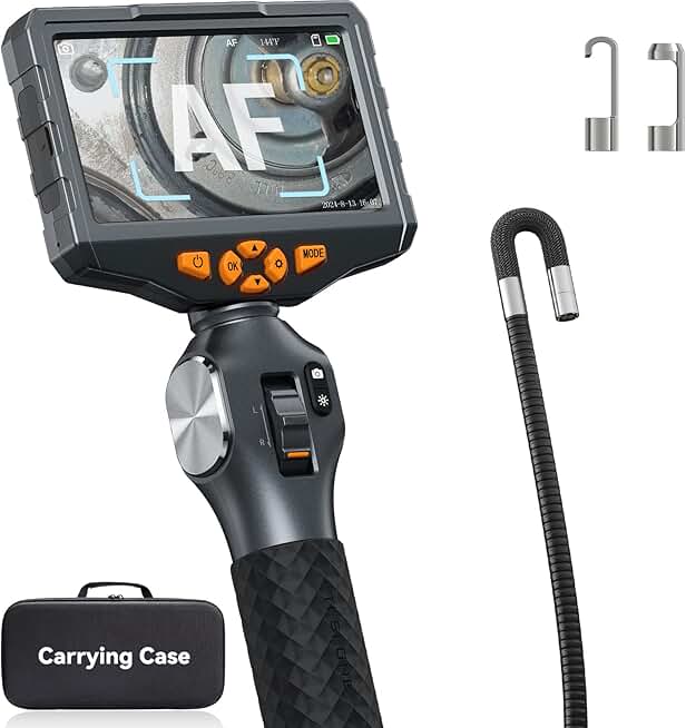 Autofocus Articulating Borescope, Teslong 5-inch IPS Endoscope Inspection Camera with Two-Way Articulation Auto Focus Probe, Industrial Fiber Optic Scope for Automotive Mechanics (0.24inch-5FT)