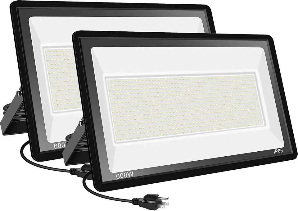 600W LED Flood Light 2Pack,Super Bright Daylight 5000K IP66 Waterproof Security Outdoor LED Arena Lights,Commercial Lighting Floodlight for Fields,Counts,Stadium