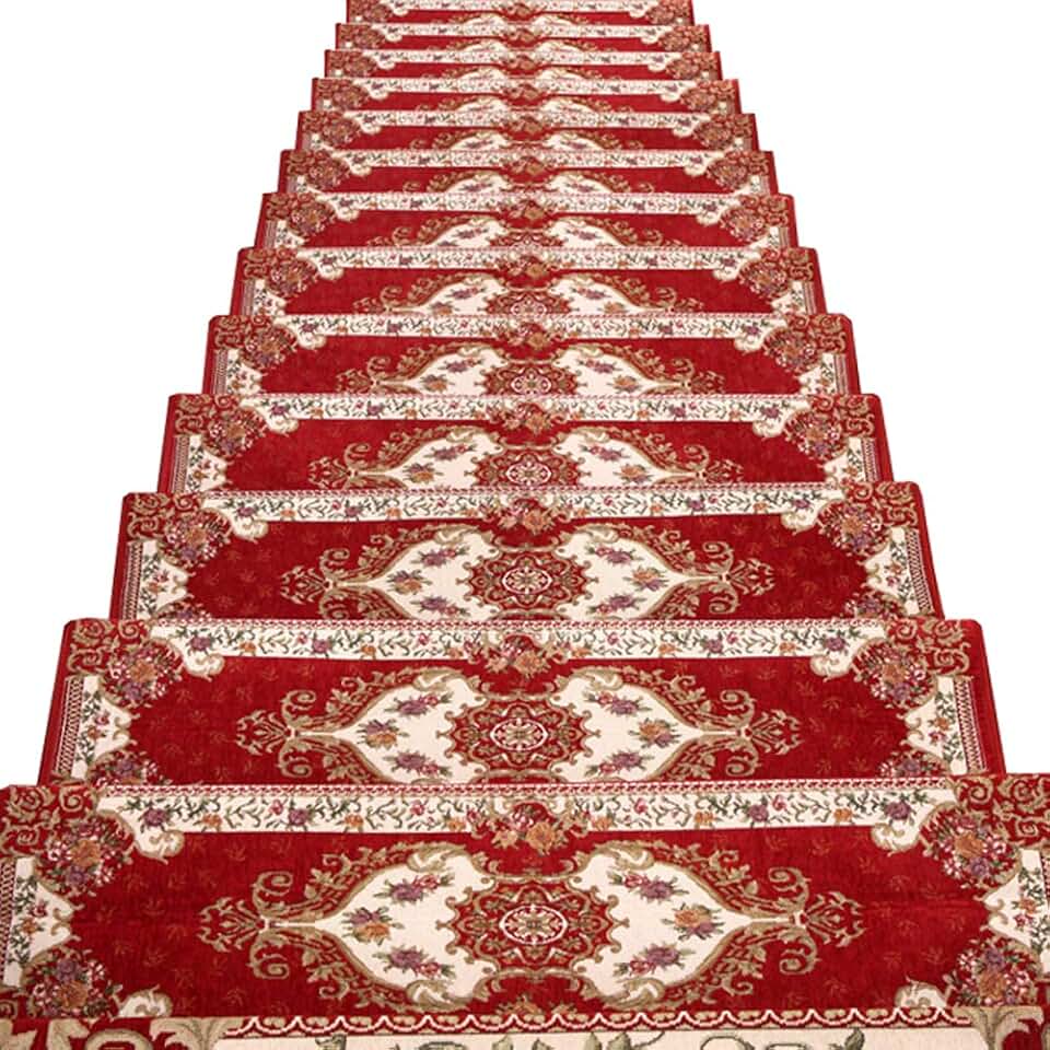 Set of 13 Non-Slip Washable Stair Treads Carpet with Skid Resistant Rubber Backing Indoor Wooden Step Mats Self-Adhesive Stair Protectors 10.2" x 25.2" Provence Red