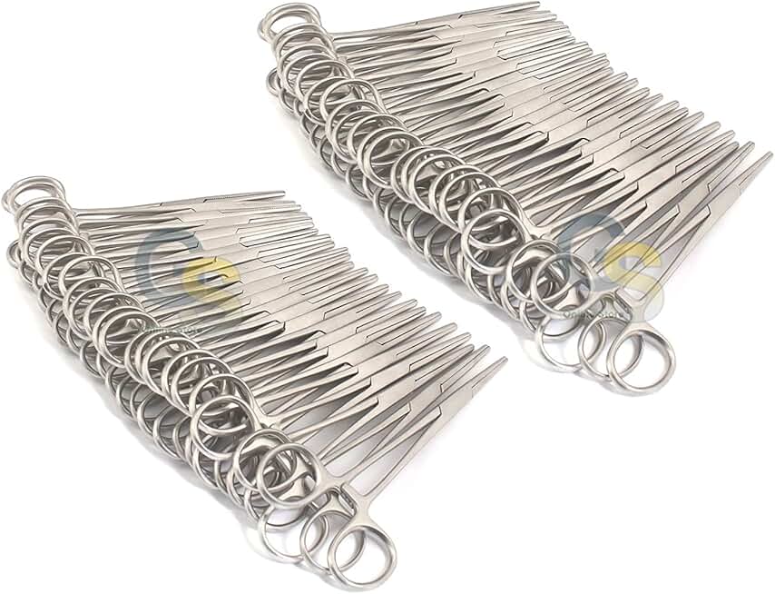 G.S Set of 100 PCS HEMOSTAT Locking Forceps 5.5" Full Serrated Stainless Steel Veterinary Instruments Best Quality
