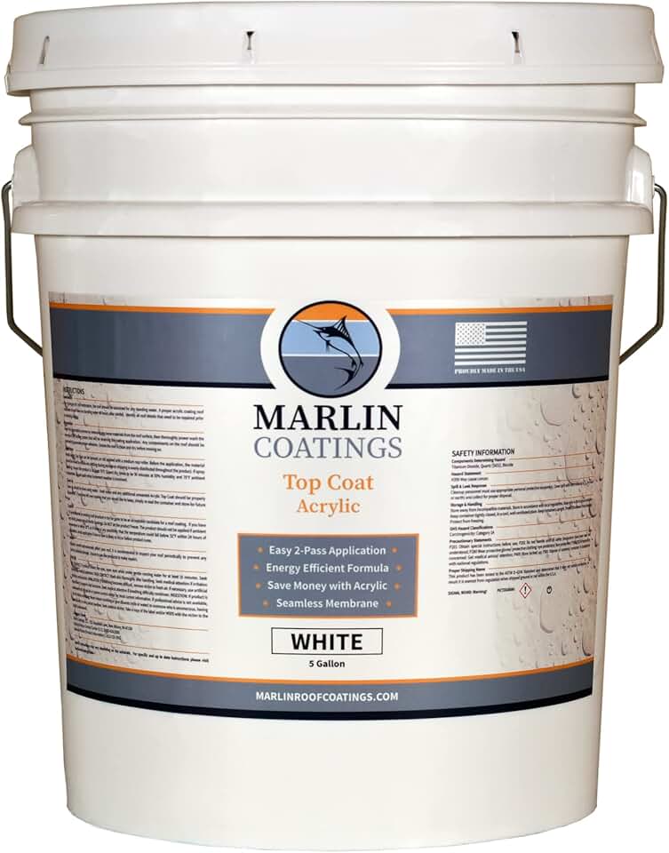 Acrylic Roof Coating – RV Roof Coating - Premium Elastomeric Waterproof Sealant - Designed for Your RV, Camper, Trailer, Commercial Building…(White, 5 Gallon)