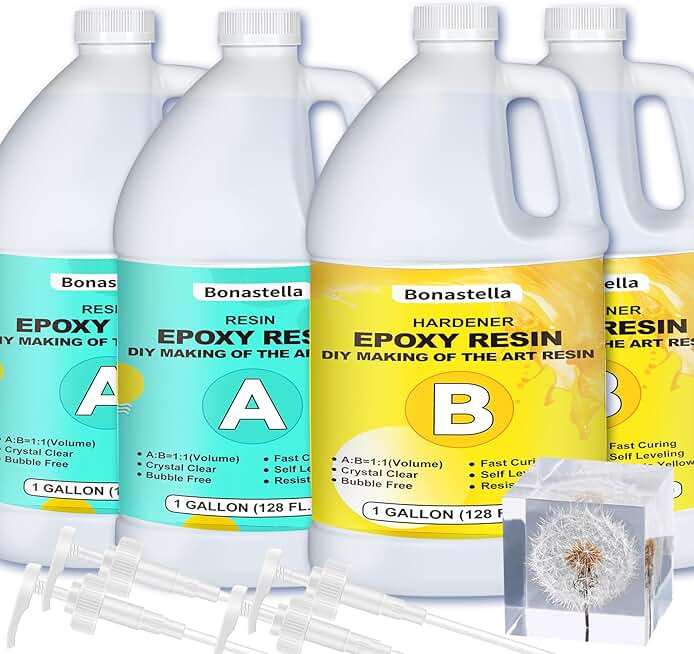4GALLON Epoxy Resin Kit - Crystal Clear Resin Epoxy Kit: Not Yellowing and No Bubble Self Leveling, for Tabletops, Coating, Casting, Wood & Resin Molds, Jewelry Making