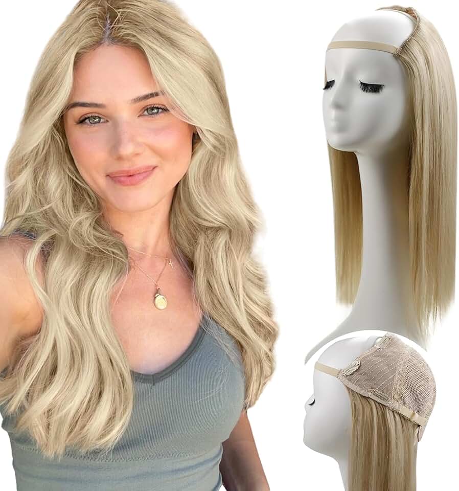 RUNATURE Blonde U Part Wig Human Hair 18 Inch 150% Density Full Head Glueless U Part Human Hair Wig One Piece Clip in Hair Extensions U Wigs Silky Straight Remy Natural Remy Hair
