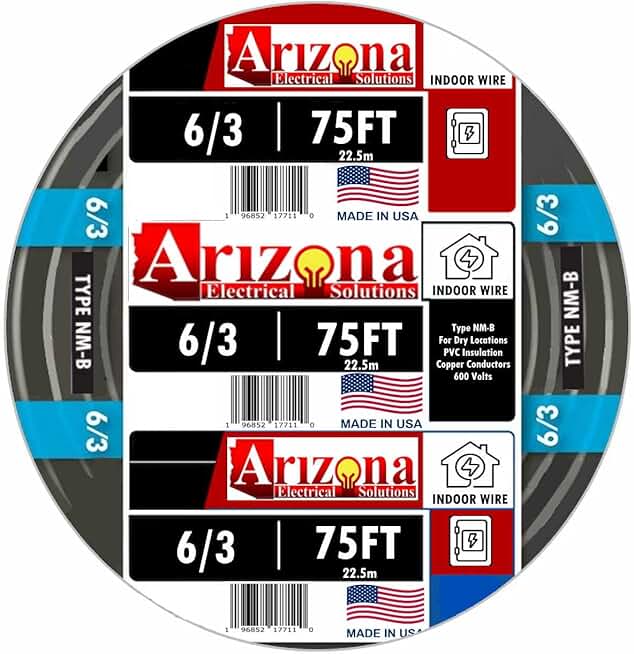 75 FEET 6/3 Type NM-B Copper. #6 AWG, 3 Conductor with Ground. Insulated Jacket Black