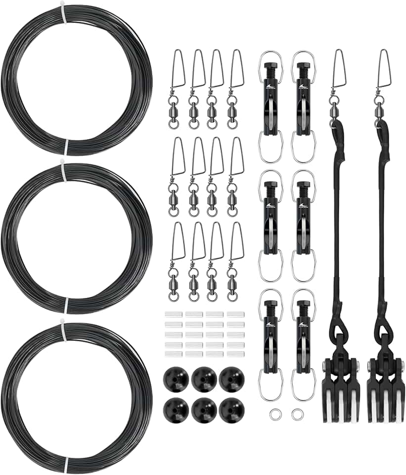 BLUEWING Single/Double/Triple Outrigger Rigging Kit All-in-One Kit with 400lb Mono Line, Release Clips, Pulley, Snap Swivels, Crimps, Ball Stops and Rings for Outrigger Setup