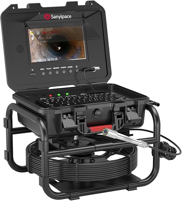 Sanyipace Sewer Inspection Camera with Locator, Self-Leveling, 512Hz Transmitter, 230ft/70m 0.2in/5mm Harder Cable, IP68 Waterproof Duct Cam with Distance Counter, 1080P 1000TVL 9'' IPS DVR Recorder