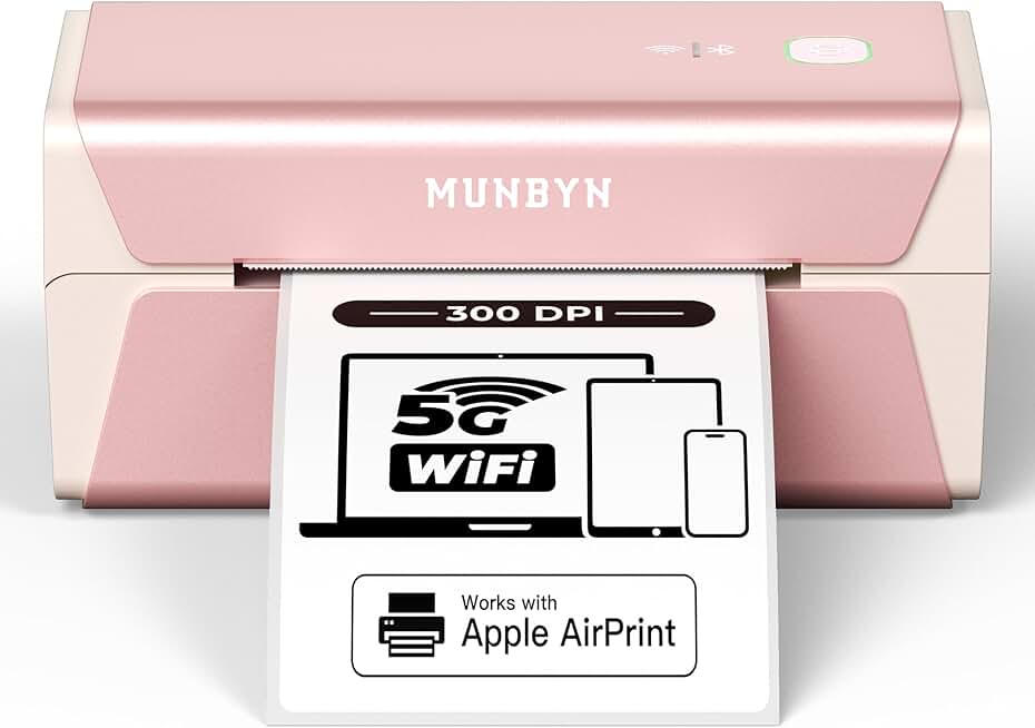 MUNBYN Pink Wireless Label Printer 300DPI, RW401AP Wi-Fi Thermal Printer, AirPrint Connectivity No Driver Compatible with iPhone, iPad, Mac, Work with 4x6 Label for Windows, Android