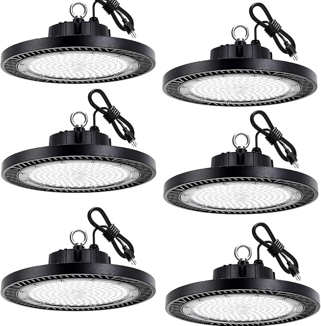 Led Shop Lights - 200W 28000lm 5000K 6 Pack UFO Led High Bay Light with Plug 5' Cable and Hook Ring, High Bay Led Lighting for Garage Gym Warehouse Workshop
