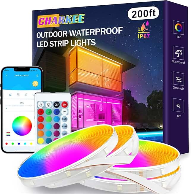 200ft IP67 Waterproof Outside LED Strip Lights, Bluetooth and APP Control LED Rope Lights Outdoor Waterproof,RGB Light Strip Music Sync,LED Lights for Pool Yard Decoration(100ft*2)