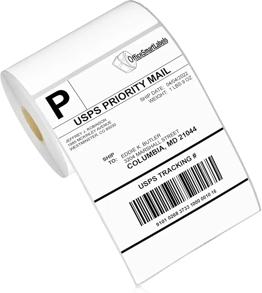 OfficeSmartLabels – 4" x 6" Direct Thermal Labels - Compatible with Zebra & Rollo Desktop Label Printers and More – 1” Core, Permanent Adhesive & Perforated [20 Rolls, 5000 Labels]