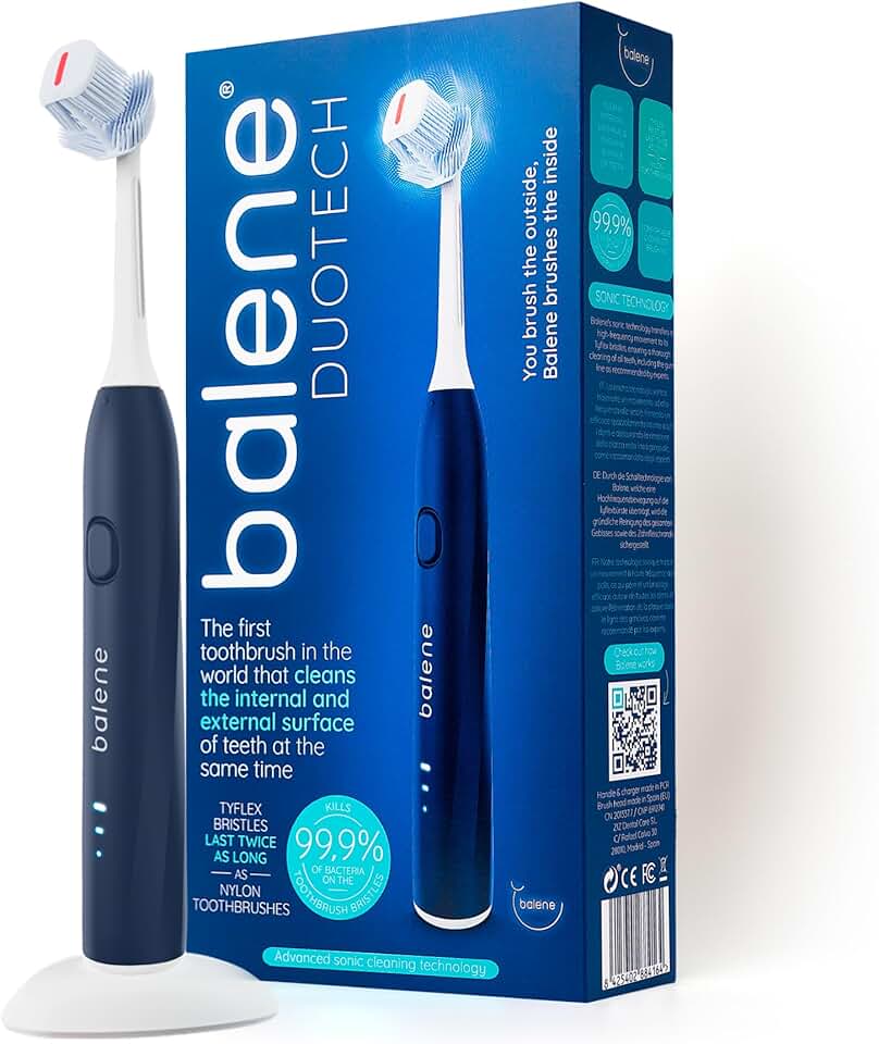 Balene Duotech Sonic Toothbrush with 360° Clean Brush Head for Superior Plaque Removal & Gum Care - Wireless Rechargeable Electric Toothbrush - Powerful Battery - Soft, Flexible Bristles for Adults