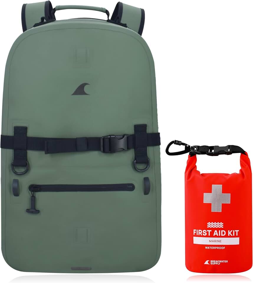 Waterproof Preparedness Pack, IP68 Submersible Airtight Backpack and Waterproof Marine First Aid Kit for Boating, Fishing, Kayaking (Fogland 25L Marsh Green)