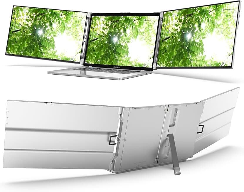 14inch Triple Portable Monitor for 13-16" Laptop, Aluminum Alloy 1200P Tri-Screen Monitor Extender with HDMI & USB-C Ports,Compatible with Mac & Windows-OK14 [Blue Case Ver]