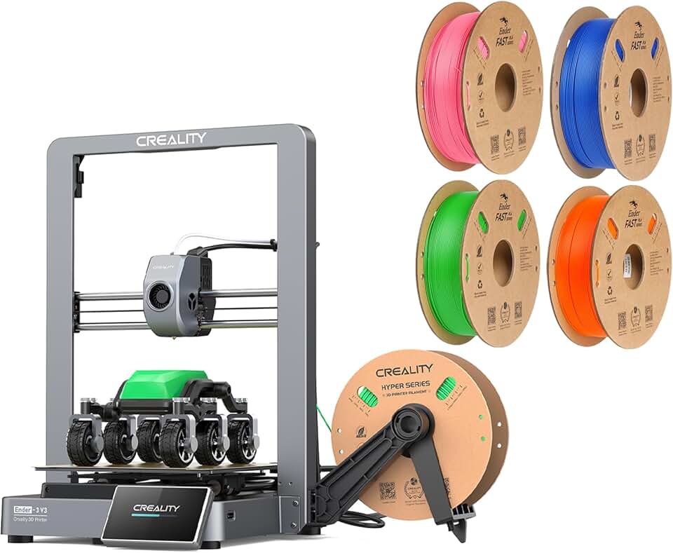 Creality Ender 3 V3 3D Printer Upgraded 600mm/s High Speed New Metal Build Bundle with High Speed PLA Filament 4Kg(Green&Orange&Blue&Pink)