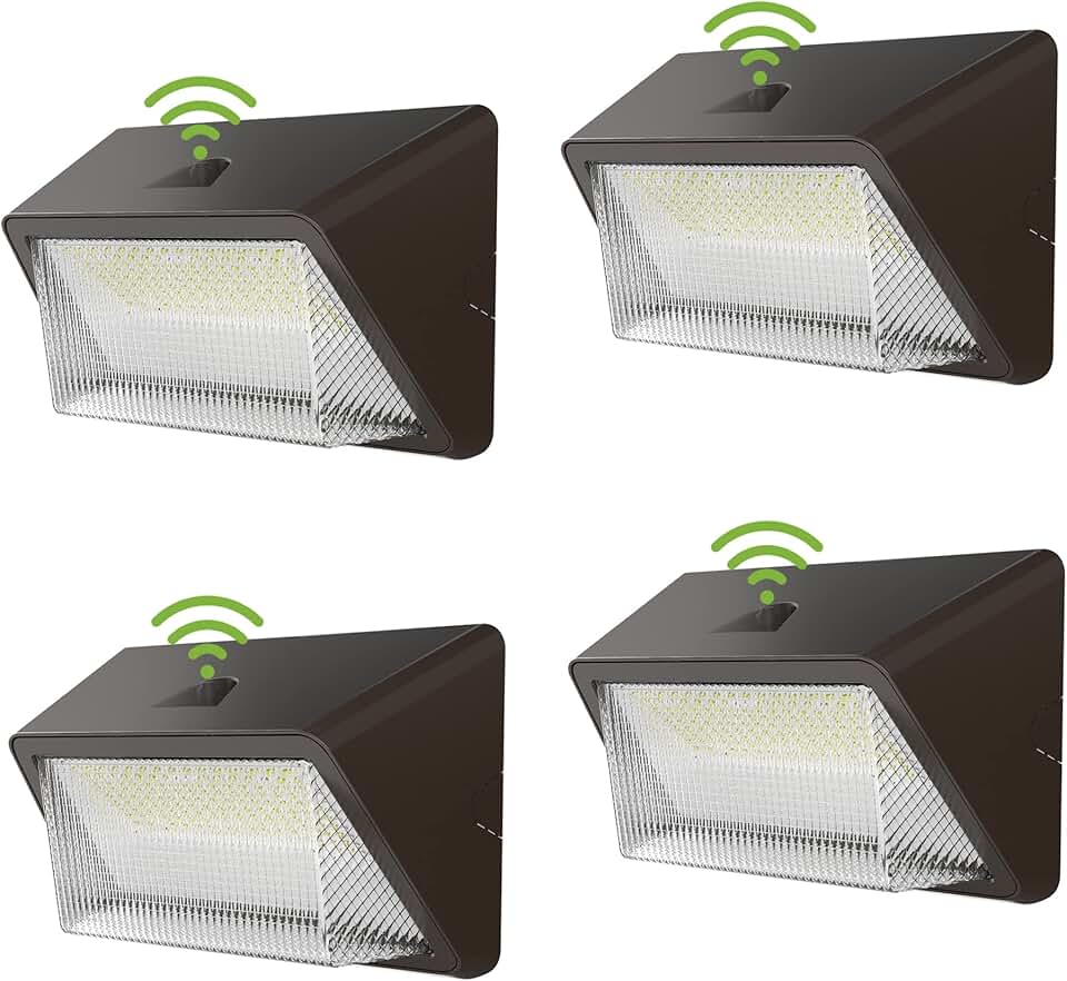 TIERONE 50W LED Wall Pack Light Dusk to Dawn Photocell Outdoor Commercial Security Area Lighting Fixture UL Listed 5500LM 4000K Daylight 400W HPS/HID Equivalent IP65 Waterproof 120-277V 4PACK