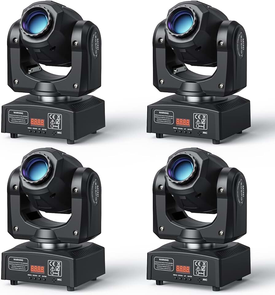 Moving Head DJ Lights, U`King 50W LED Moving Head Light with 7 Gobos 7 Colors and Open White Beam Spotlight by DMX and Sound Activated for Wedding DJ Disco Parties Live Show Church Bar (Set of 4)