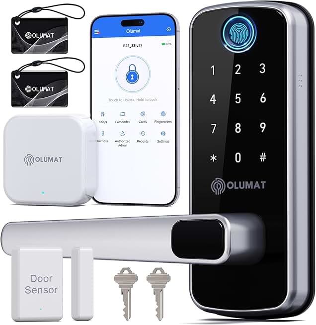 Smart Lock with Door Sensor - Fingerprint, Code, Keyless Entry - Easy Installation, 30-Day Satisfaction Guarantee