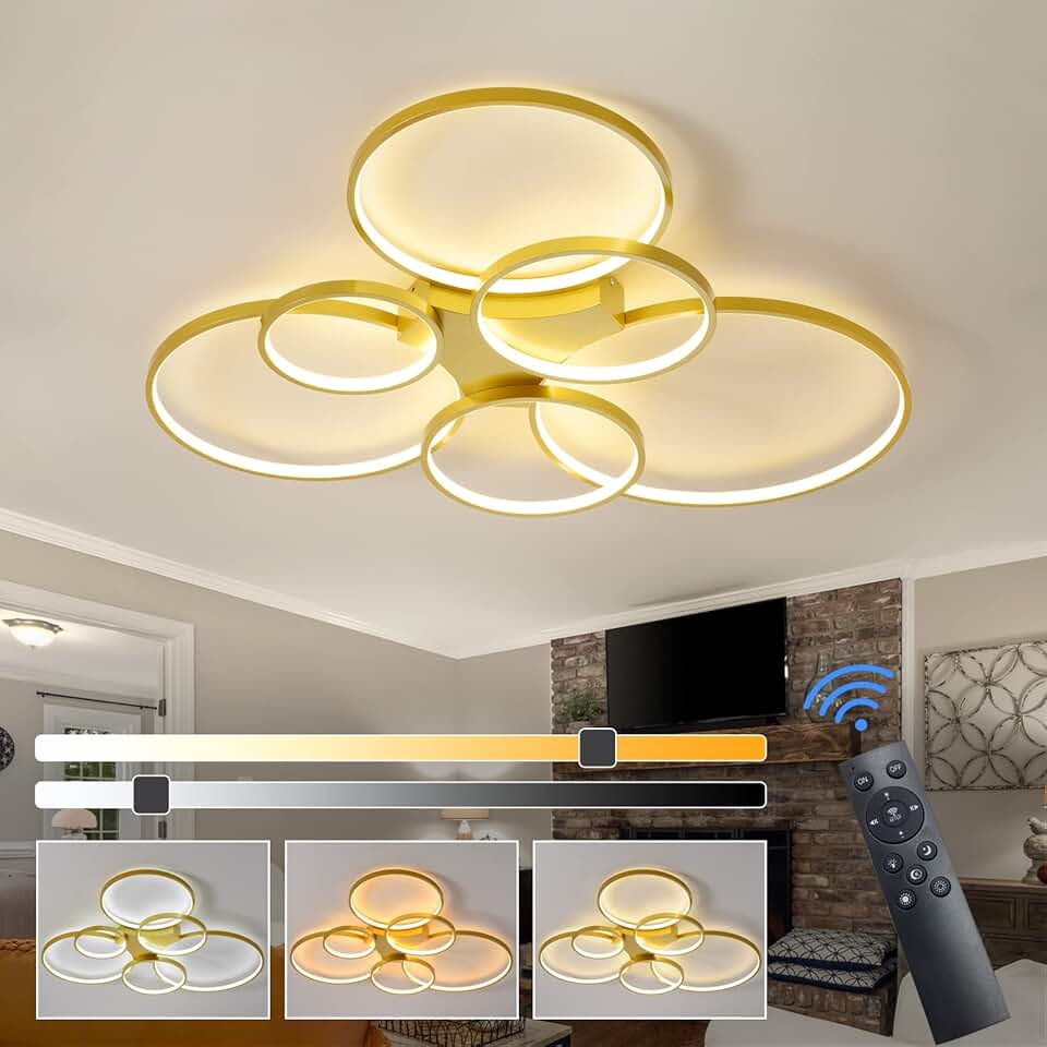 Modern LED Ceiling Light 39.4in 90W Dimmable Ceiling Light Fixtures with Remote Control 6 Rings Flush Mount Ceiling Lamp Gold Ceiling Chandelier for Living Room,Dining Room,Kitchen,Bedroom