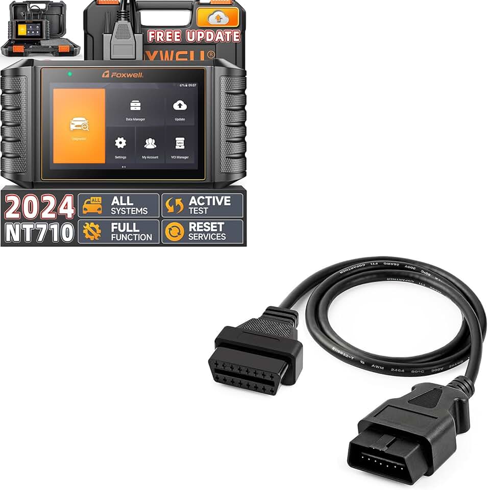 FOXWELL NT710 fit for Ford Scanner Diagnostic Tool + OBD2 16Pin Male to Female Diagnostic Extension Convert Cable Adapter 1m/ 39inch