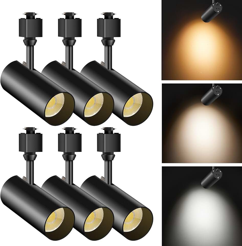 6 Pack 20W Track Lighting Heads,LED Dimmable H Type Track Lighting fixtures,3-Color Selectable 3000K-4500K-6000K Track Lights Ceiling Spotlight for Accent Retail Lighting,CRI90+ 2000lm Black