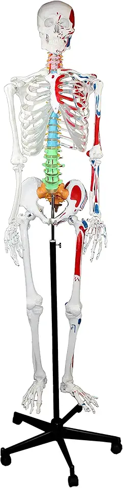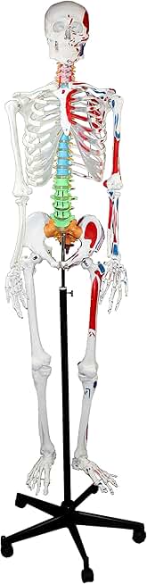 Walter Products B10200 Human Skeleton Model with Muscles Colored and Labeled, Full Size, Mounted on Rolling Base, 66"/168cm Height
