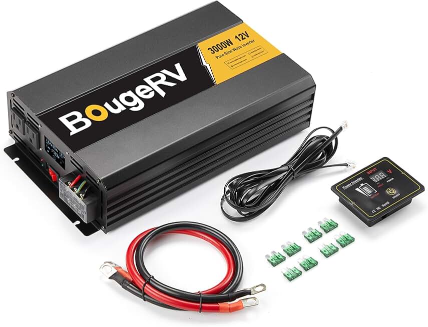 BougeRV Pure Sine Wave Inverter 3000W Convert DC 12V to AC 120V, with LCD Digital Displayer, Wired Remote Controller, for Off-Grid Solar Power System, RV, Home Backup Power