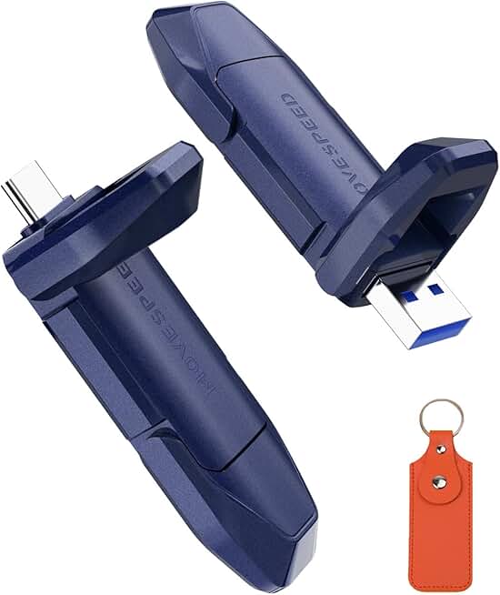 MOVE SPEED 2TB Solid State Flash Drive, 1000MB/s Read Write Speed, USB 3.2 Gen2 & Type C Dual Interface SSD with Keychain Leather Case Thumb Drive for iPhone 15 Series/MacBook/Android Phone etc