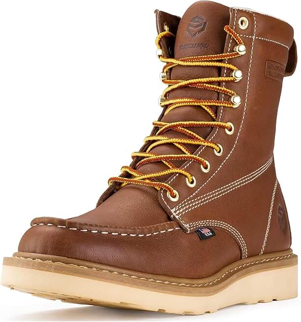 SUREWAY Mens 8 in Wedge Moc Soft/Steel Toe Work Boots for Men,Full-Grain Leather,Goodyear Welt,EH,Safety Industrial Construction Boots/Shoes for Women