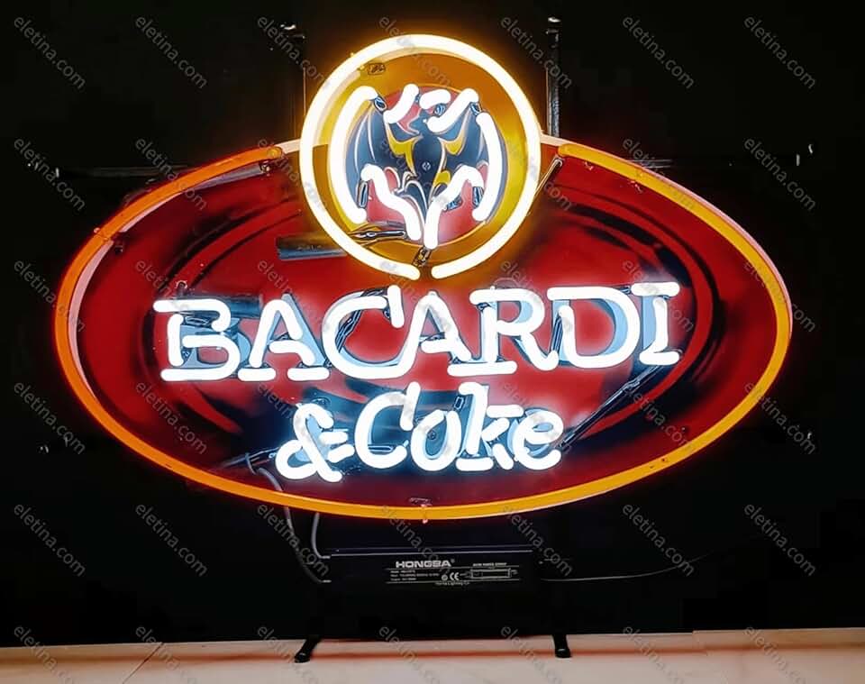 Neon Signs Beer Bar Bedroom Bacardi Oval Rum Sign Glass Neon Signs for Office Hotel Pub Cafe Birthday Party Man Cave Neon Light Art Wall Lights 24 X 20 Inches