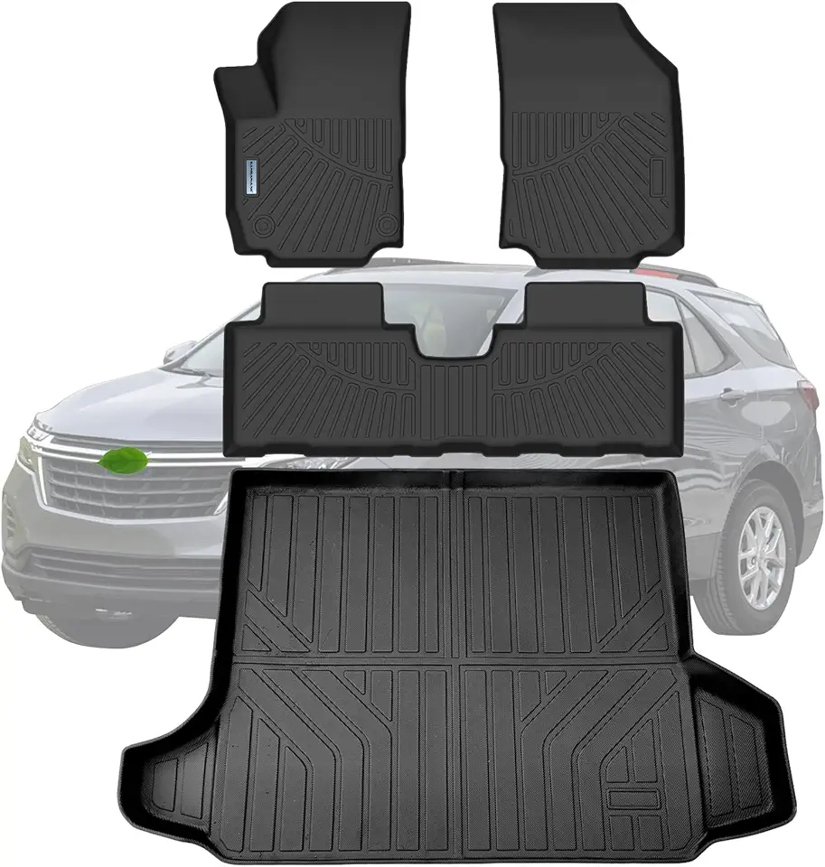 Floor Mats & Trunk Mat for 2018-2023 2024 Chevy Equinox/GMC Terrain,TPE All Weather Protection 1st & 2nd Row Car Floor Liners Front & Cargo Liners Accessories-Black