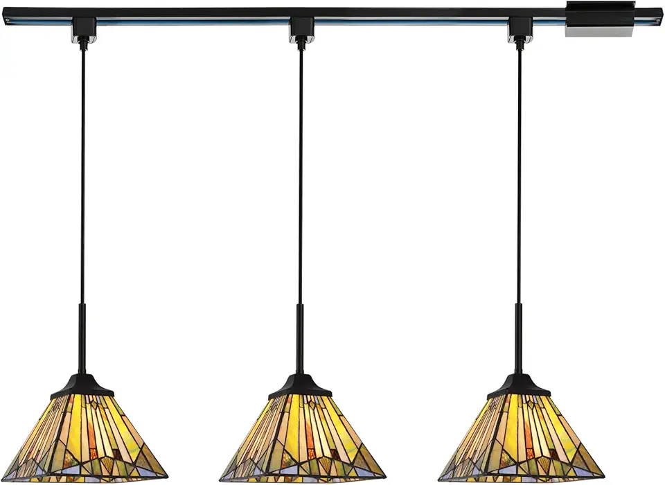 VINLUZ 3 Pack H-Type Tiffany Style Track Ceiling Light Fixtures Hanging with Stained Glass Shade Black Pendant Lighting Include H Type Track Lighting Rail and H Track Floating Canopy Connector