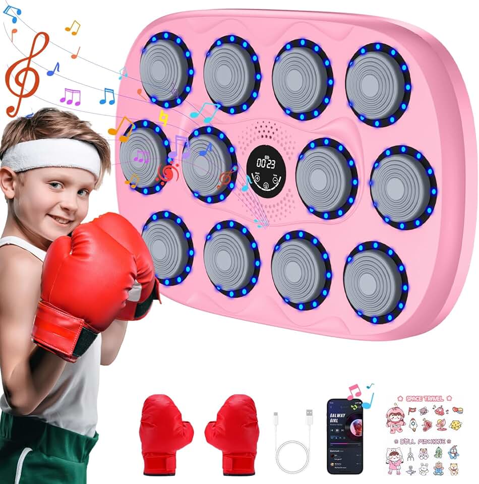 Boxing Machine Pink,Music Boxing Machine for Kids, Musical Boxing Machine Pink Wall Mounted with Gloves for Kids,Smart Bluetooth Electronic Punching Boxing Workout Machine for Women Girls Teens