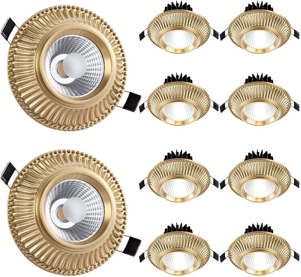 10 Pack 4.5 Inch Round Brushed Brass Downlight Luminaire, LED Recessed Light Fixtures Ceiling Lights, Dimmable Brass Baffle Trim, CRI 90+,Anti-Glare Led can lights - No Flicker