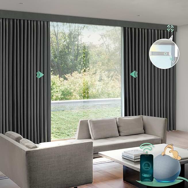 Yoolax Smart Custom XL Curtain Compatible with Alexa and Google Home, Motorized Curtain Rechargeable with Remote Customized Size (Woven Grey)