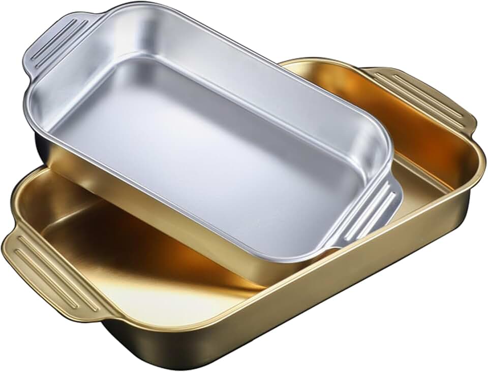 SVRITE Stainless Steel Rectangular Fish Baking Plate 33/37/41/45/51cm Deep Roasting Pan Lasagna Pan with Double Handle Cake Brownie Casserole Pan Steam Sheet for Thanksgiving Christmas (51cm,Gold)