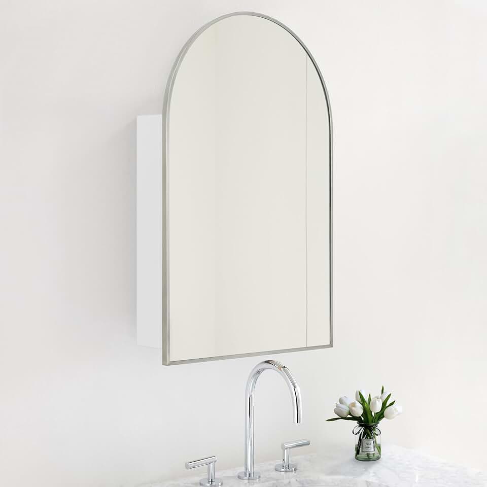 TEHOME 20 x 30'' Brushed Nickel Arched Bathroom Medicine Cabinet with Mirror Recessed and Surface Mount Medicine Cabinet Mirror